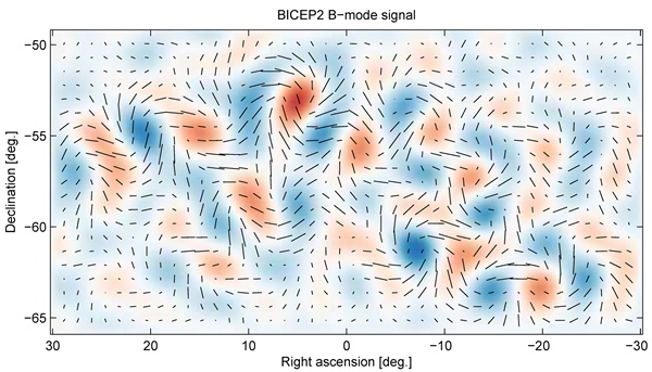 Using ultra-sophisticated detectors the BICEP-2 team saw the tell-tale pattern called a B-mode curl in the present-day CMBR.